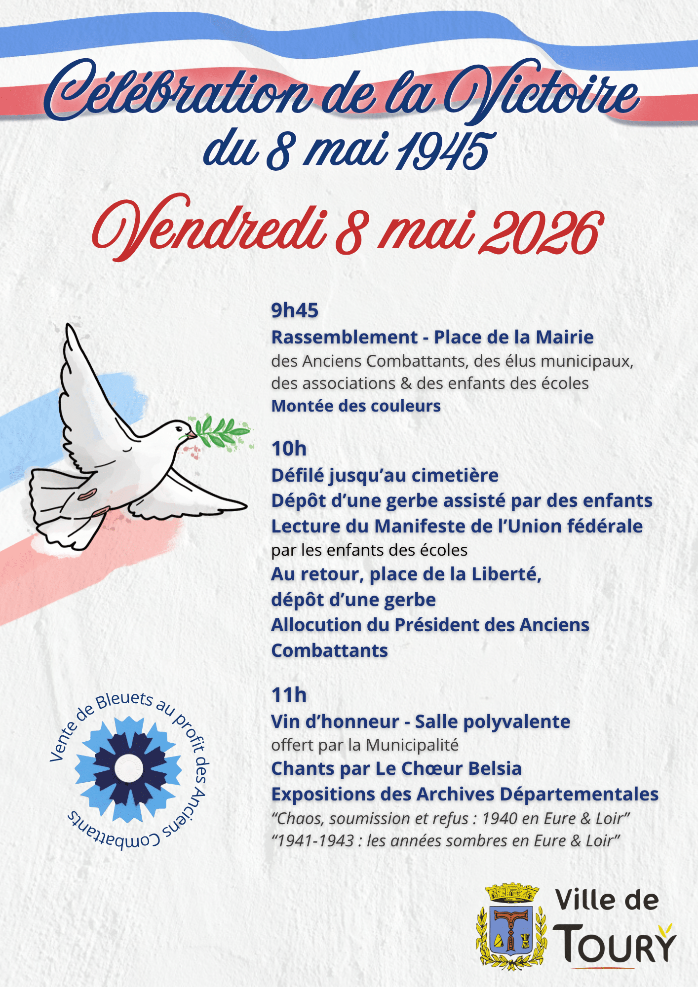 Retrouvez ci-contre le programme de la Cérémonie Commémorative du 8 mai 1945.